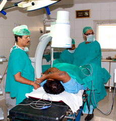 The lithotripsy procedure is done in a lithotripsy specialised centre and takes about an hour to be done. This is done on the same day care basis, usually without anaesthesia. Some analgesia and sedation may be given to allay the patient's anxiety and make him relax or go to sleep. The stone is localised with high frequency digital C-arm and the shock waves are focused on the stone. The patient may feel a tapping sensation during the procedure. If a large stone fragment remains after treatment a second sitting may be required after 7 – 10 days.